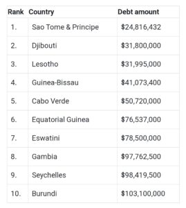 10 African countries with the lowest debts to the IMF