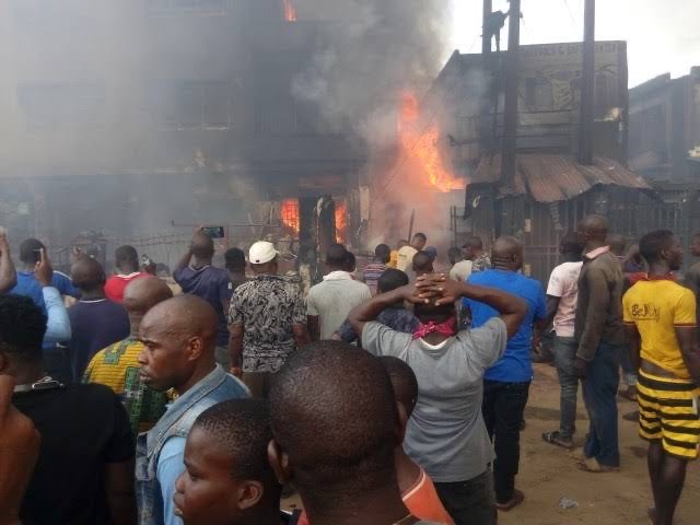 “Report reaching Lagos State Fire and Rescue Service indicates shops at the popular Alaba International Market, Ojo, Lagos are on Fire. However, Fire Crew from Ojo, Sari-Iganmu and Ajegunle are being turned back by angry mobs from performing their statutory duty but fire fighting trucks are presently on standby.