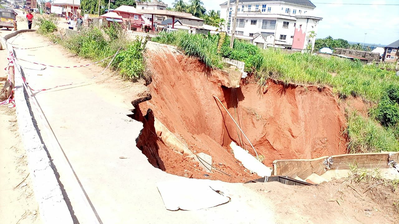 The Commissioner for Works, Engr. Ifeanyi Okomma, explained that the erosion is a major one standing at 8 kilometers plus 100 along Onitsha-Owerri Road.
