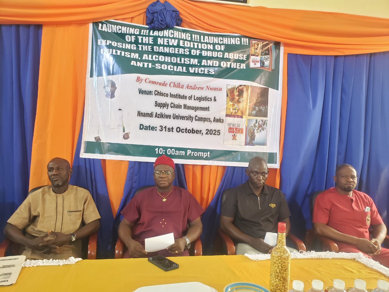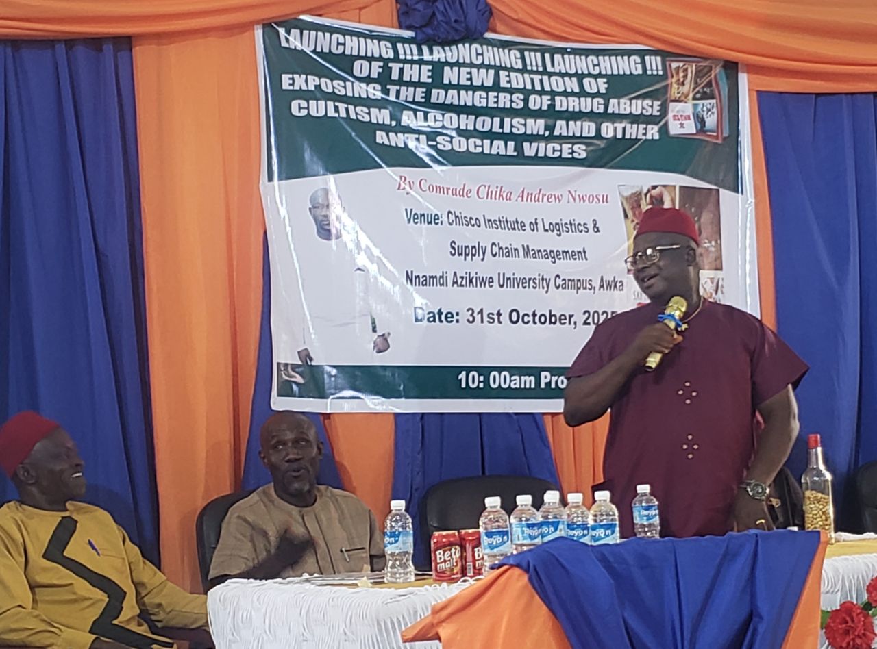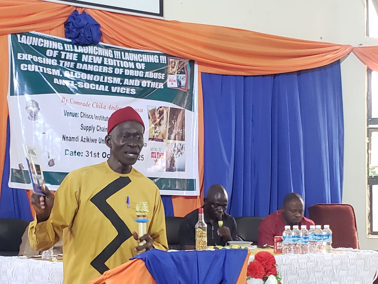 Comrade Chika Andrew Nwosu made the call during the launching of his book titled “Exposing the dangers of drugs abuse, cultism, alcoholism and other anti-social vices.
