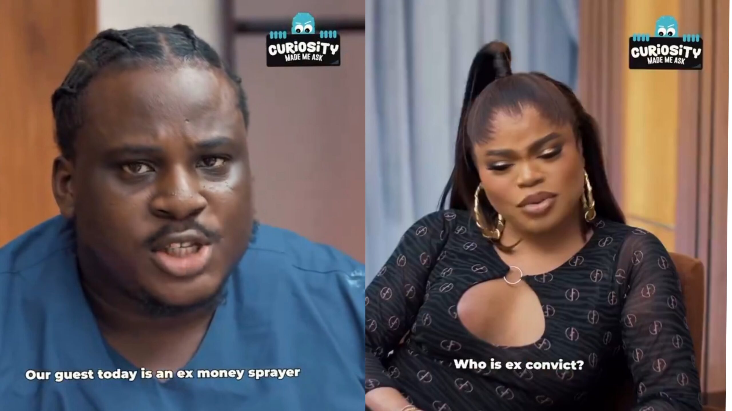 While introducing Bobrisky on the show, he noted that the new guest was a money sprayer and an ex-convict.