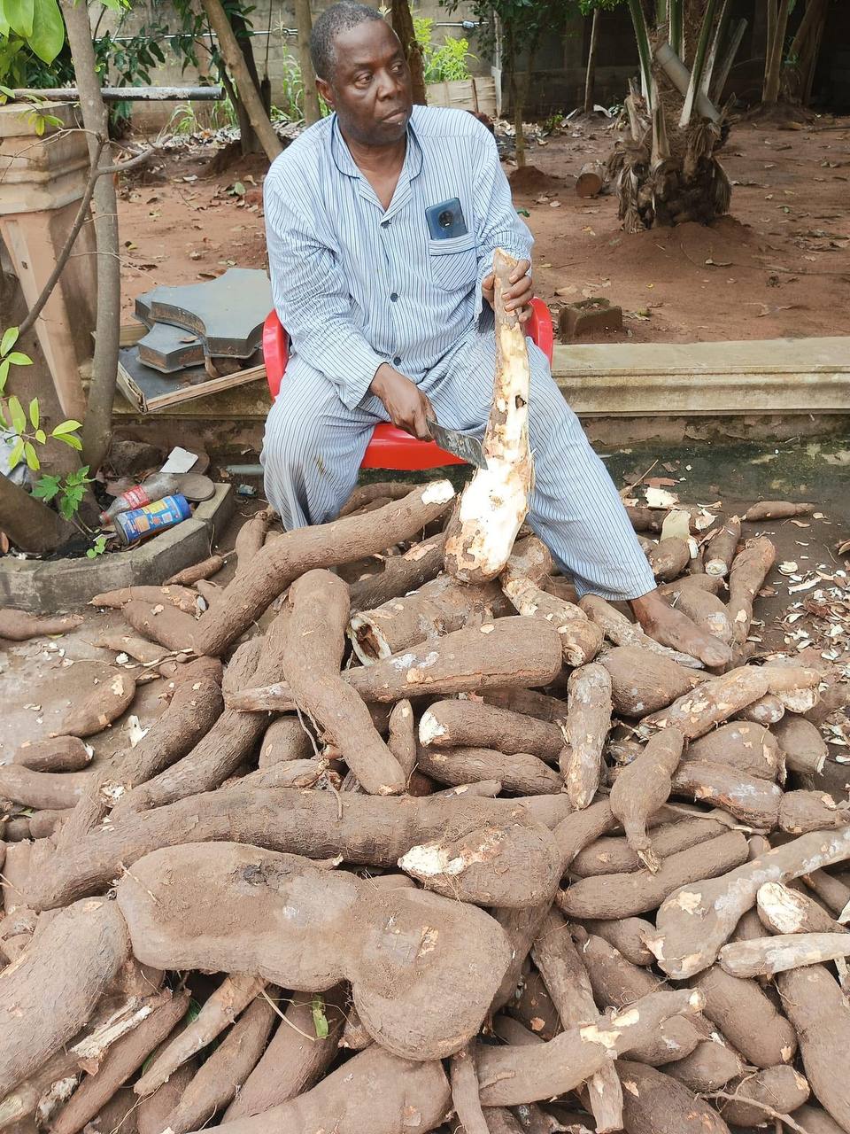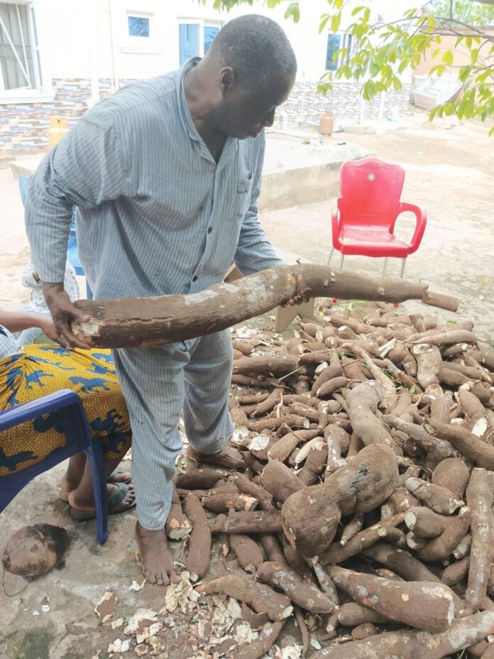 A certain elder statesman from Ekwulobia in Aguata LGA of Anambra State has disclosed a harvest of cassava of unusually huge sizes.