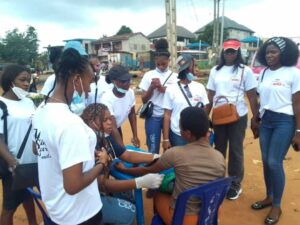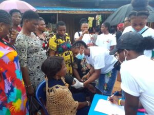 The student nurses who came out in their numbers went round the market to educate the traders and conduct free sugar and blood pressure test on the traders at Nkwo Market, Ogidi.
