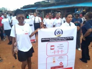 while a medical laboratory Technician, Ifeoma Ajaegbu spoke on “Benefits of blood donation” stressing that a pint of blood can save 3 lives, and urged those between the ages of 18 and 45 years to endeavour to donate blood at least three times a year.
