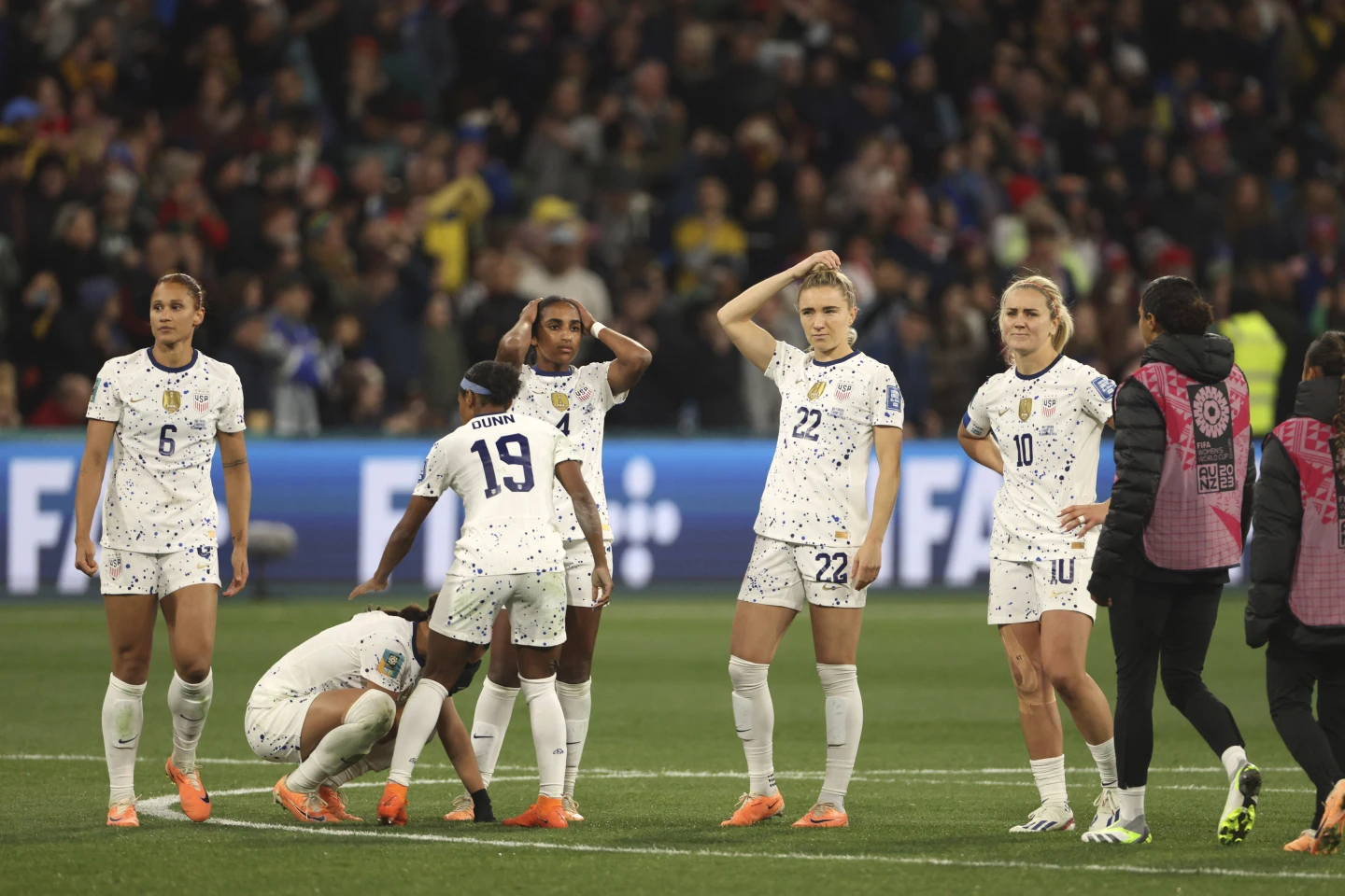 “Just devastated. It feels like a bad dream,” said captain Alex Morgan. “The team put everything out there tonight, I feel like we dominated, but it doesn’t matter. We’re going home and it’s the highs and lows of the sport of soccer. So, yeah, it doesn’t feel great.”