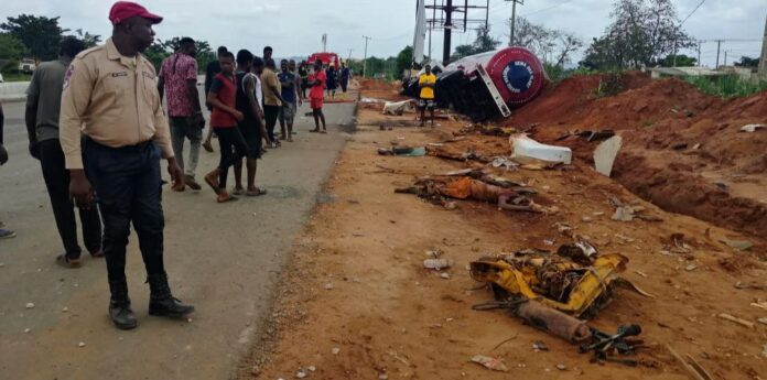 the crash, which occurred on Wednesday, involved two vehicles: a Mark LPG tanker and a TVS commercial tricycle (Keke) with registration number UMZ002QJ.