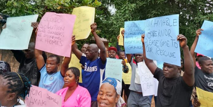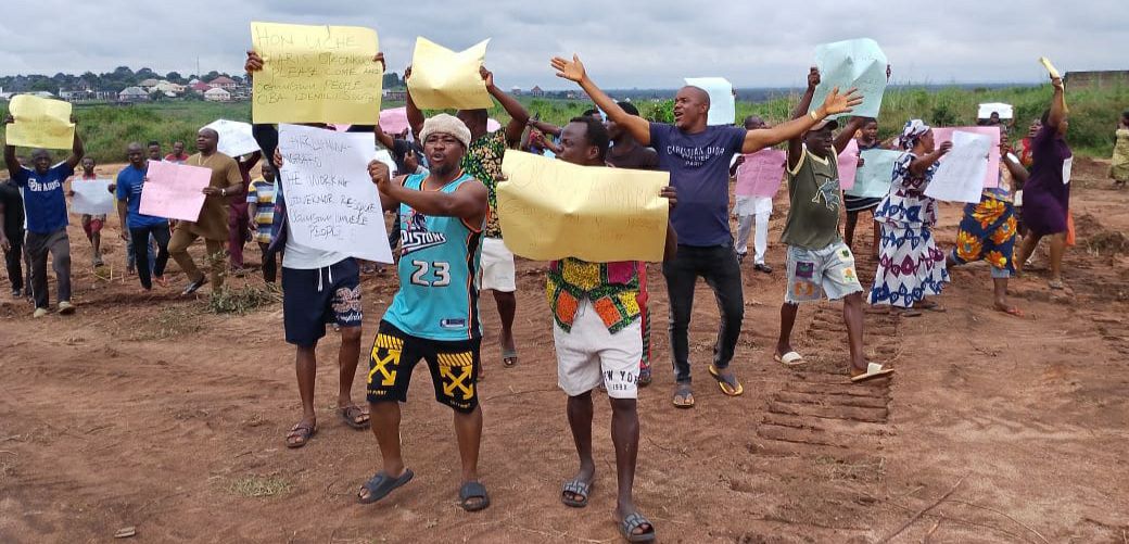 Angel Network News (ANN) reports that the protesters frowned over the the destruction of buildings, farm land, cash crops, economic trees, among others.