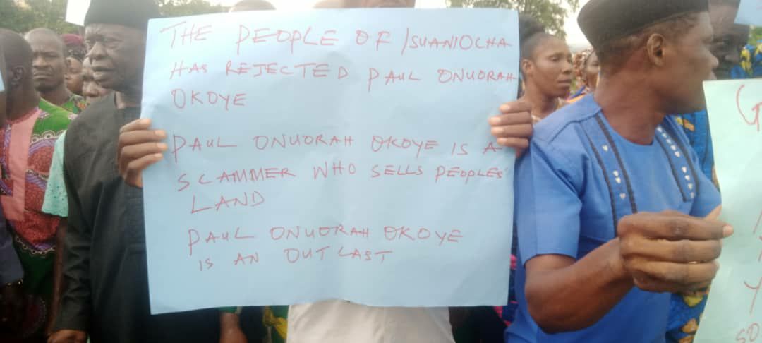 Mr Friedrich Chukwuma Egwunwa, the caretaker President General of Isuaniocha, while presenting their protest letter to the government, said crisis began since 2018 when some persons including present Commissioner for Homeland Affairs, Mr Chikodi Anara connived and sold vast portion of land belonging to Isuaniocha Community Secondary School.