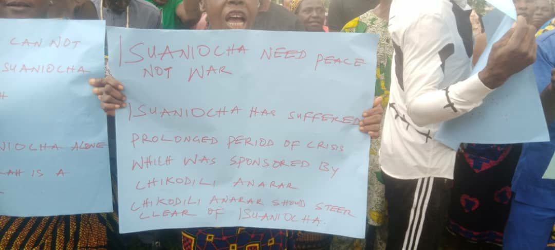 ” we trust the administration of our governor, please let him come and address the crises in Isuaniocha, all we want is peace and that is why we are here on a peaceful protest, to let him know that we are pained over the ugly trends in the town which is caused by few persons who interfere in our issues. ”