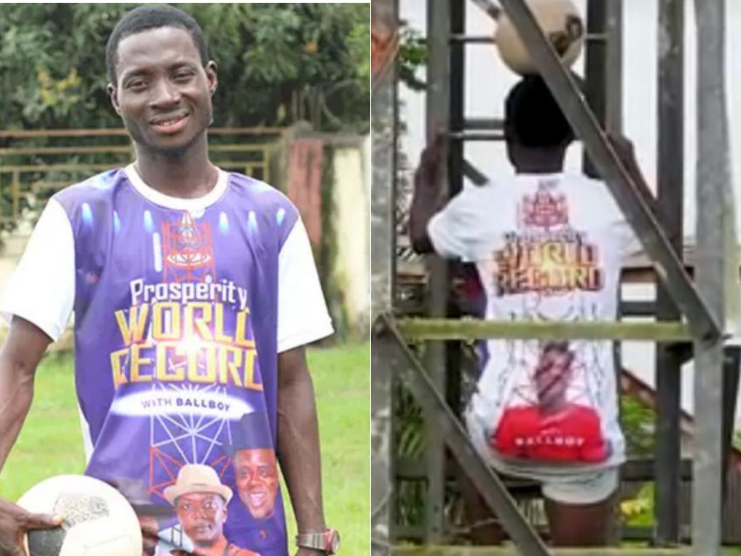 “So, to prove them wrong, Tonye decided to demonstrate his skills by setting a Guinness World Records title for the most steps climbed on a ladder while balancing a football on the head.