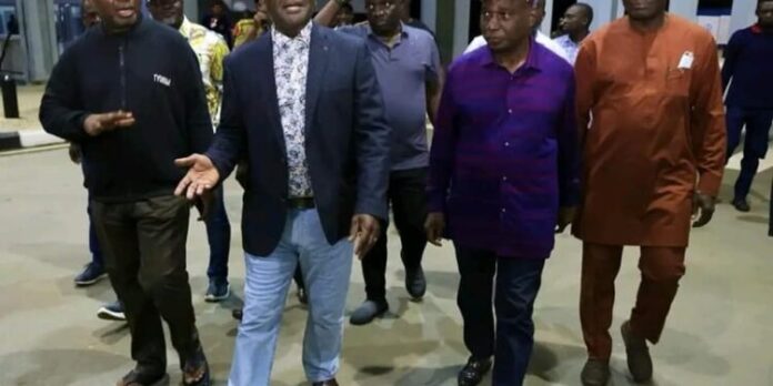 Pictures here by Akile Shimataver Doublegrace shows the Governor being received at the Nnamdi Azikiwe International Airport by some government officials and political leaders from Benue state.