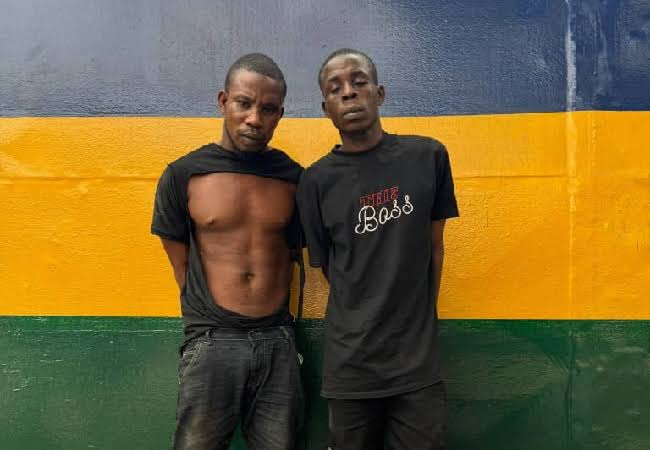 The suspects, identified as 27-year-old Agbojule Smart and 30-year-old Keleke Michael, were apprehended early Friday, January 24, 2025, while attempting to flee Lagos State.