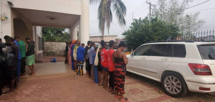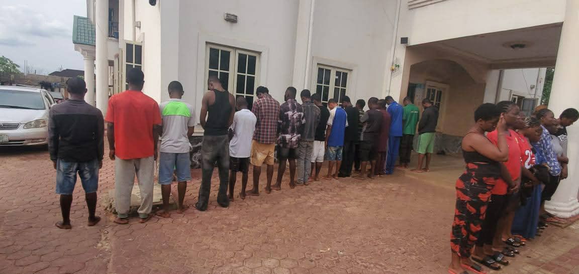 Operatives of Anambra State Security outfit, Agunechemba, has arrested twenty suspected commercial female sex workers and eighteen males in a brothel at Okpuno, Awka South Local Government Area of Anambra State