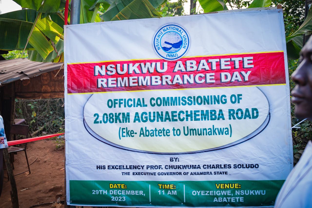 Anambra State Governor Professor Chukwuma Charles Soludo has commissioned 11km of newly constructed roads in Abatete, praising the community’s private sector initiative and calling on other citizens to follow suit.