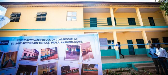 Governor Chukwuma Soludo has commissioned newly renovated class rooms at St. Jude’s Secondary School in Ihiala.