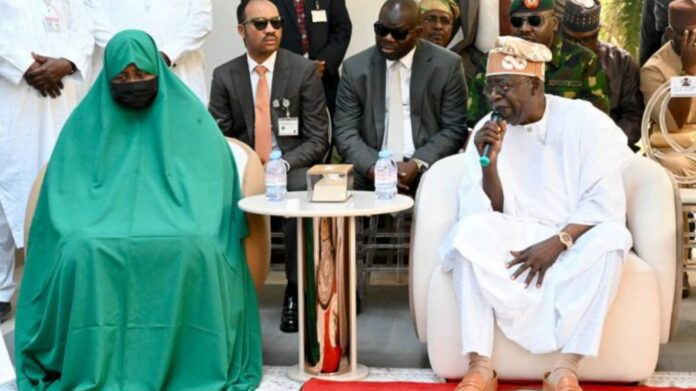 President Bola Tinubu on Friday paid a courtesy visit to Aisha Buhari, the widow of former President Muhammadu Buhari, during his trip to Kaduna State.