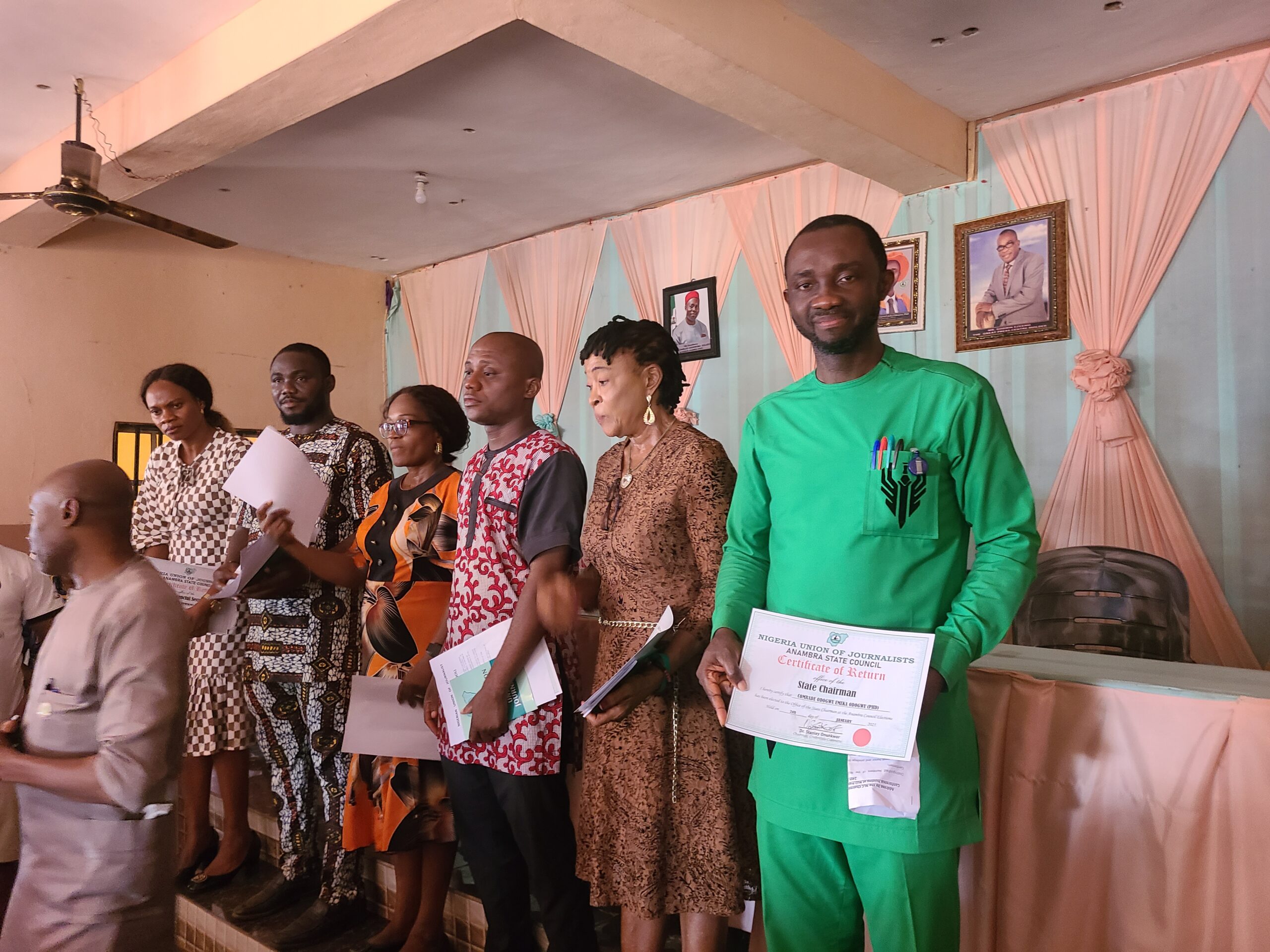 Dr. Odogwu polled 173 votes to defeat his opponent, Comrade Ngozi Obileri who got 40 votes cast. Also, Mr. Chibuzo Obidike of Anambra Broadcasting Service (ABS) Chapel of the Union who was elected Treasurer, polled 168 votes to defeat the incumbent, Comrade Ogemdi Ozoemena, who got 45 votes cast.
