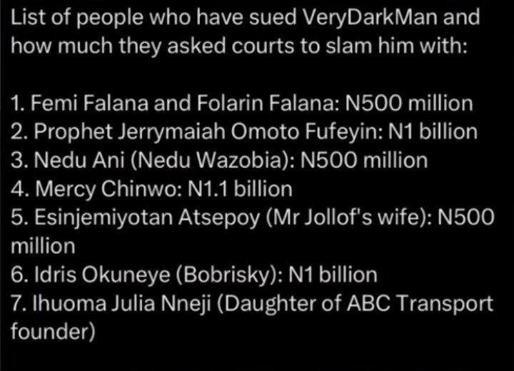 Reacting to the lawsuit, VDM took to Instagram to list about seven individuals who have taken legal action against him, lamenting that he cannot afford to fulfill all the financial demands.