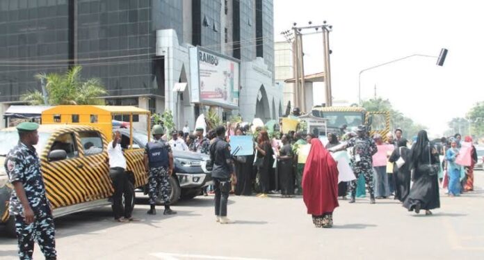 Rattled by the presence of the protesters, the security agents had fortified security, deployed more vehicles and personnel at strategic positions to forestall any security breach.