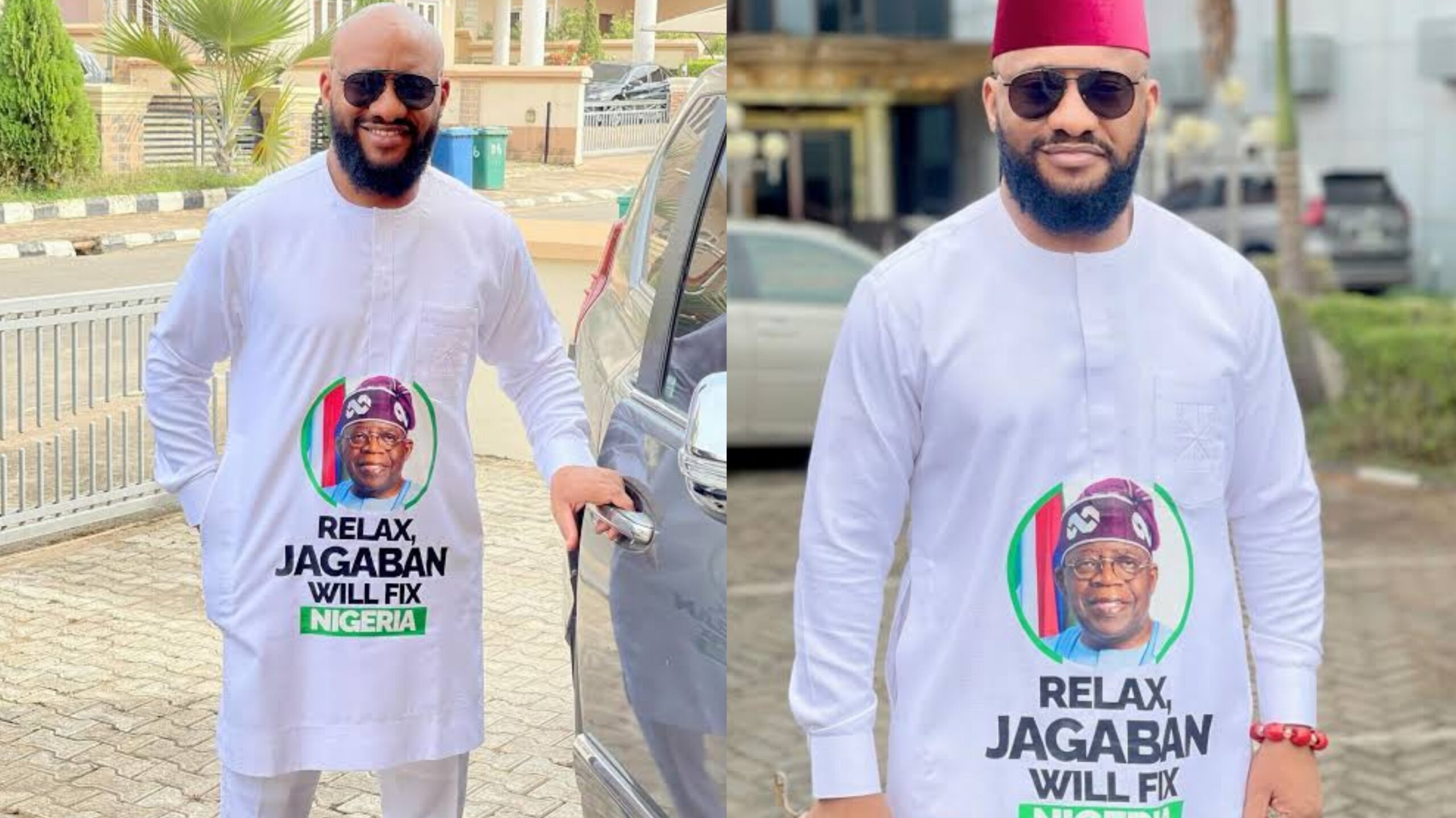 Edochie made the post using a photograph of himself adorning a dress with President Tinubu’s face.
